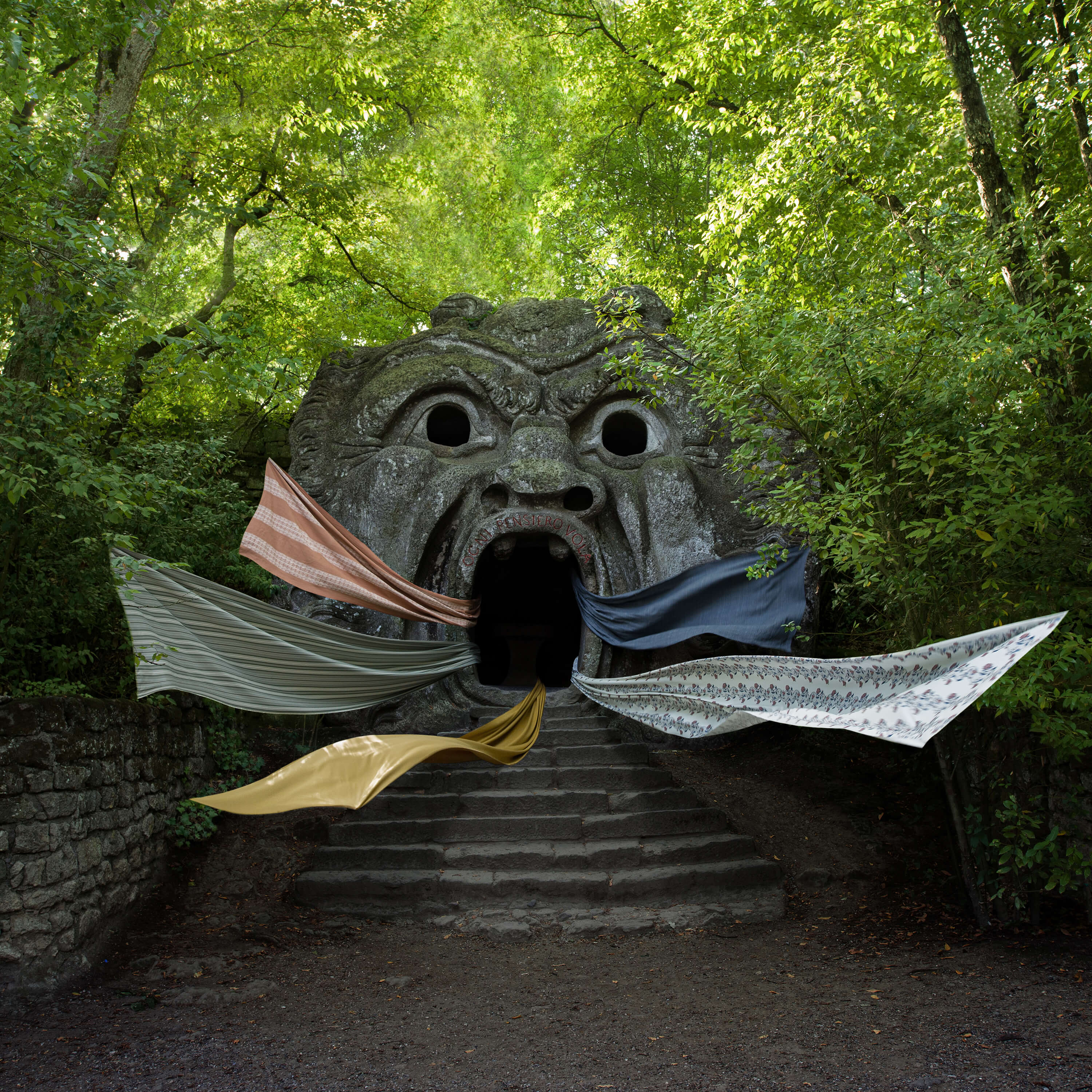 Three crumbling statues guard the grotto, moss-covered oracles of stone secrets. They could be the three graces — muses of the imagination, or the three fates — weavers of life and death. The statues quiver, shaking dust and grit from their feet as if removing their sandals after a long journey.