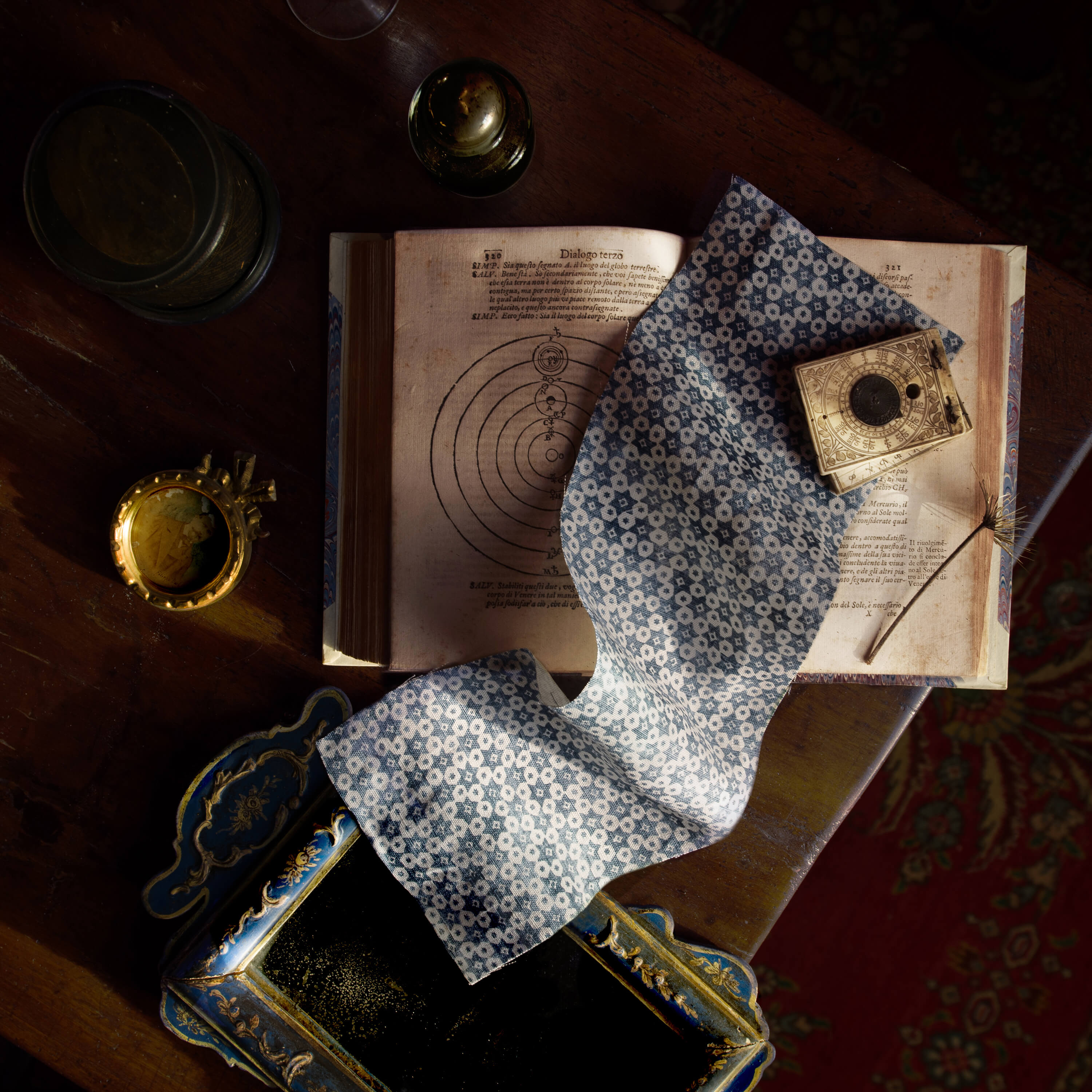 The monks usher twilight in with evening prayers, their chants christening a new night, born of thousands now past. Strung together in imperfect constellations, the vestiges of ancient gods watch the evening unfurl. Il Vespro — the vespers — give thanks for the day that is gone, sending benedictions into the darkened heavens. Vestments of woven silk reveal the changing nature of light, every movement illuminating the underlying intricacies of a pattern repeated perpetually.