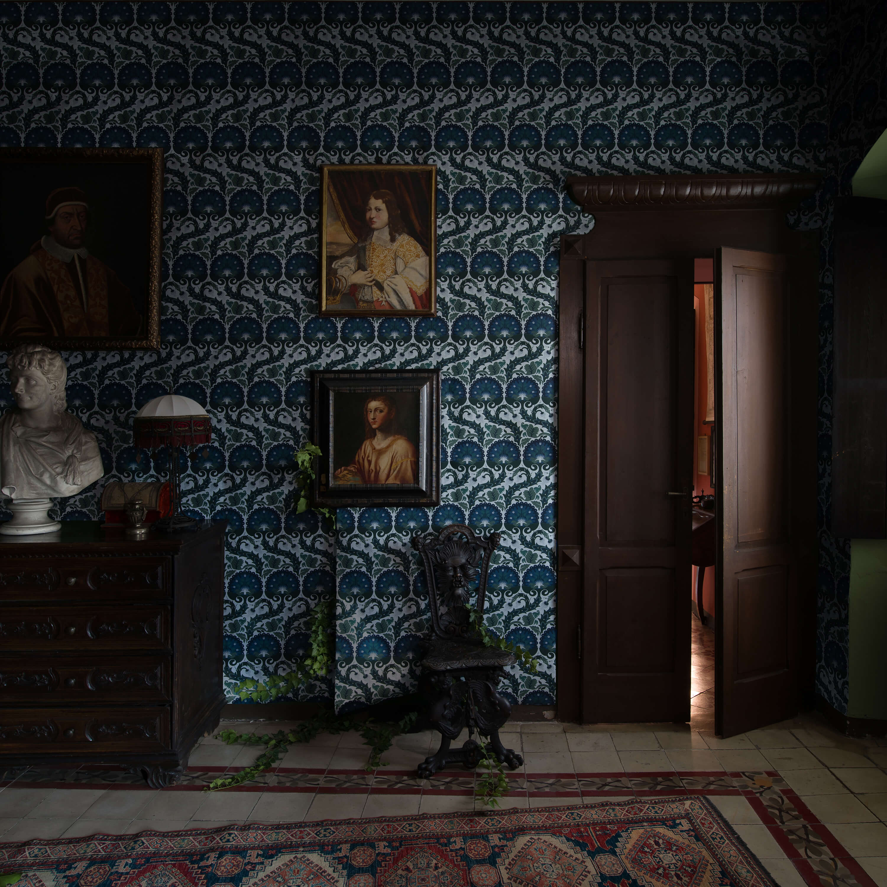 A cold moment passes and a man answers the door. His hair is dark, his eyes dim. He wears a waxed wool suit, the type that fell out of fashion decades ago, yet it retains the crisp seams of a garment well cared for. “Are you here to see the painting?” he asks. You search for an answer, but a fog clouds your mind. “Yes,” you answer, not knowing why.