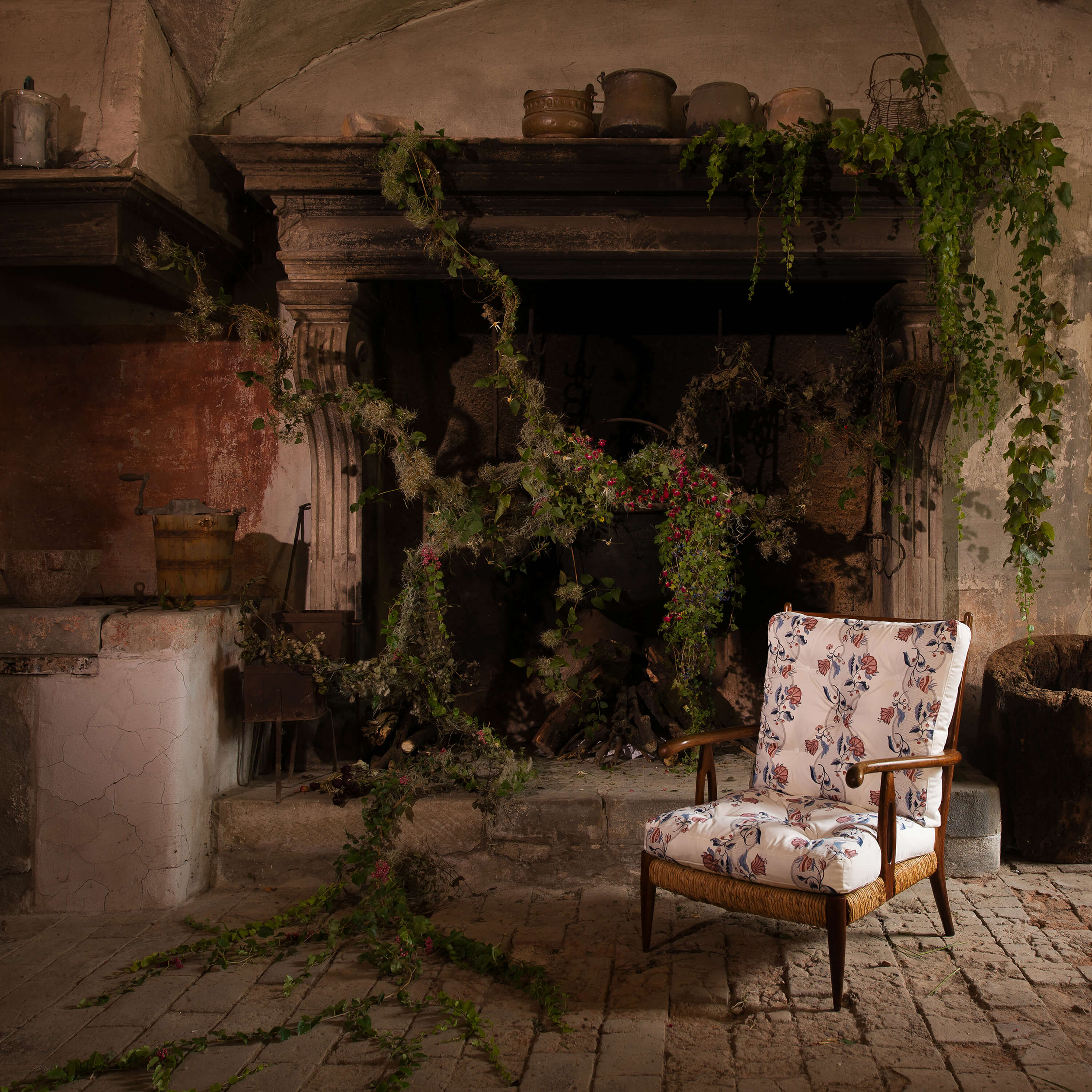 Go north from Rome. Outside the city, vast fields of flax blanket the hills. Now, in late summer, their blue flowers unfurl, reeling in the wind like ocean waves. From the small-town tavern where you spent the night, the walk further afield takes an hour or two. As evening approaches, the air softens and releases you from its embrace. At the crest of a hill, the via narrows. A labyrinth of overgrown trees seems to part on your ascent, an invitation past the iron gates that lie ahead. Beyond, the light is transparent, cast through foliage in trembling amber greens. Herbs grow wild and unkempt, a dense tangle of thyme, lavender and lemon balm suspended in the heady air.
