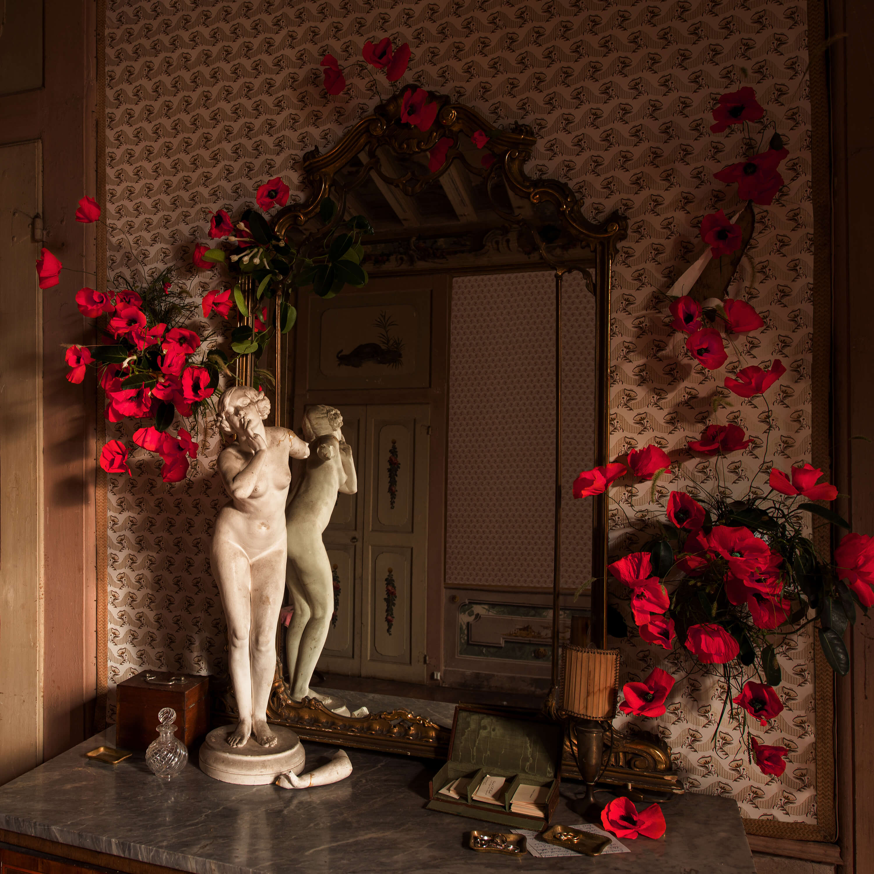 Above ground, poppies sway in trance.