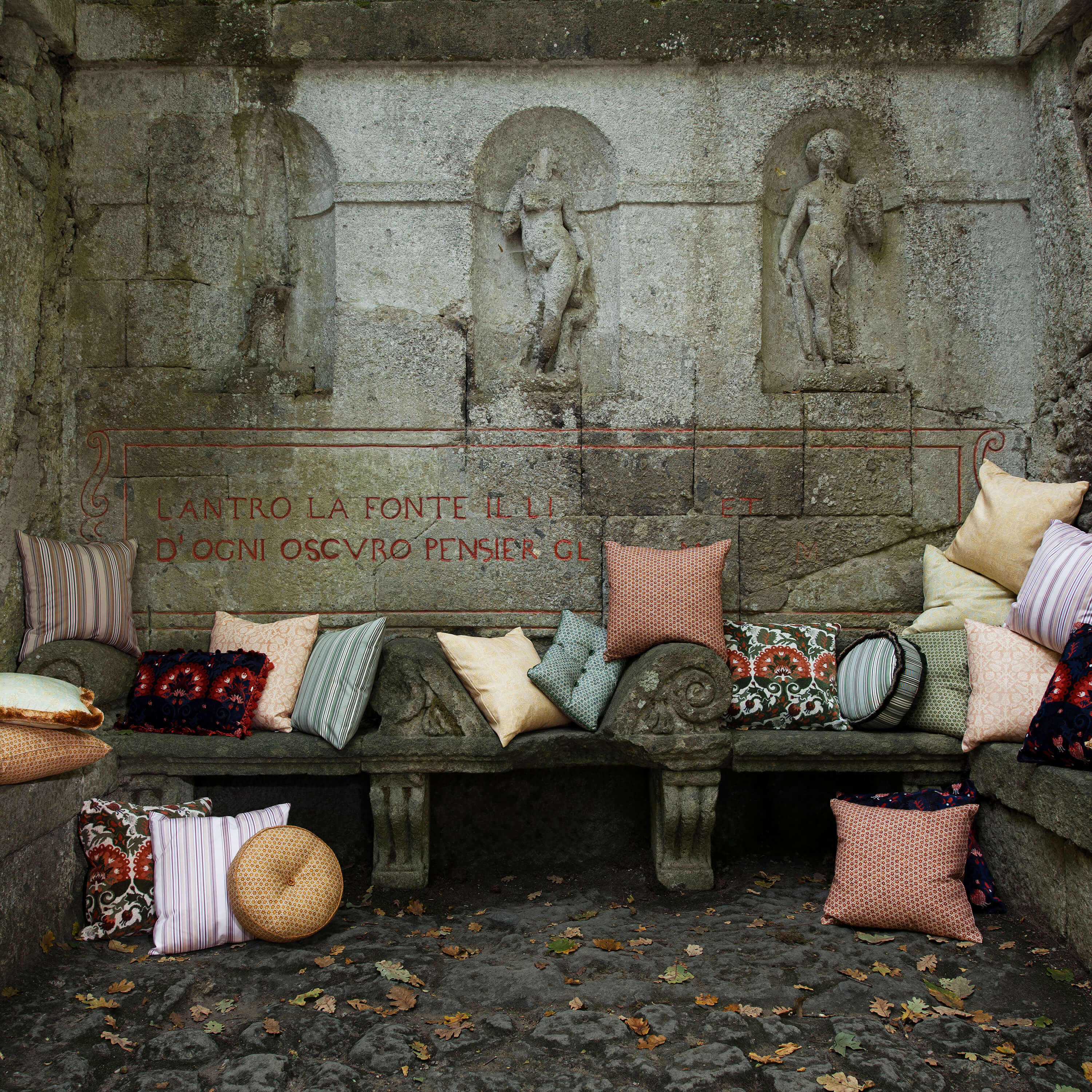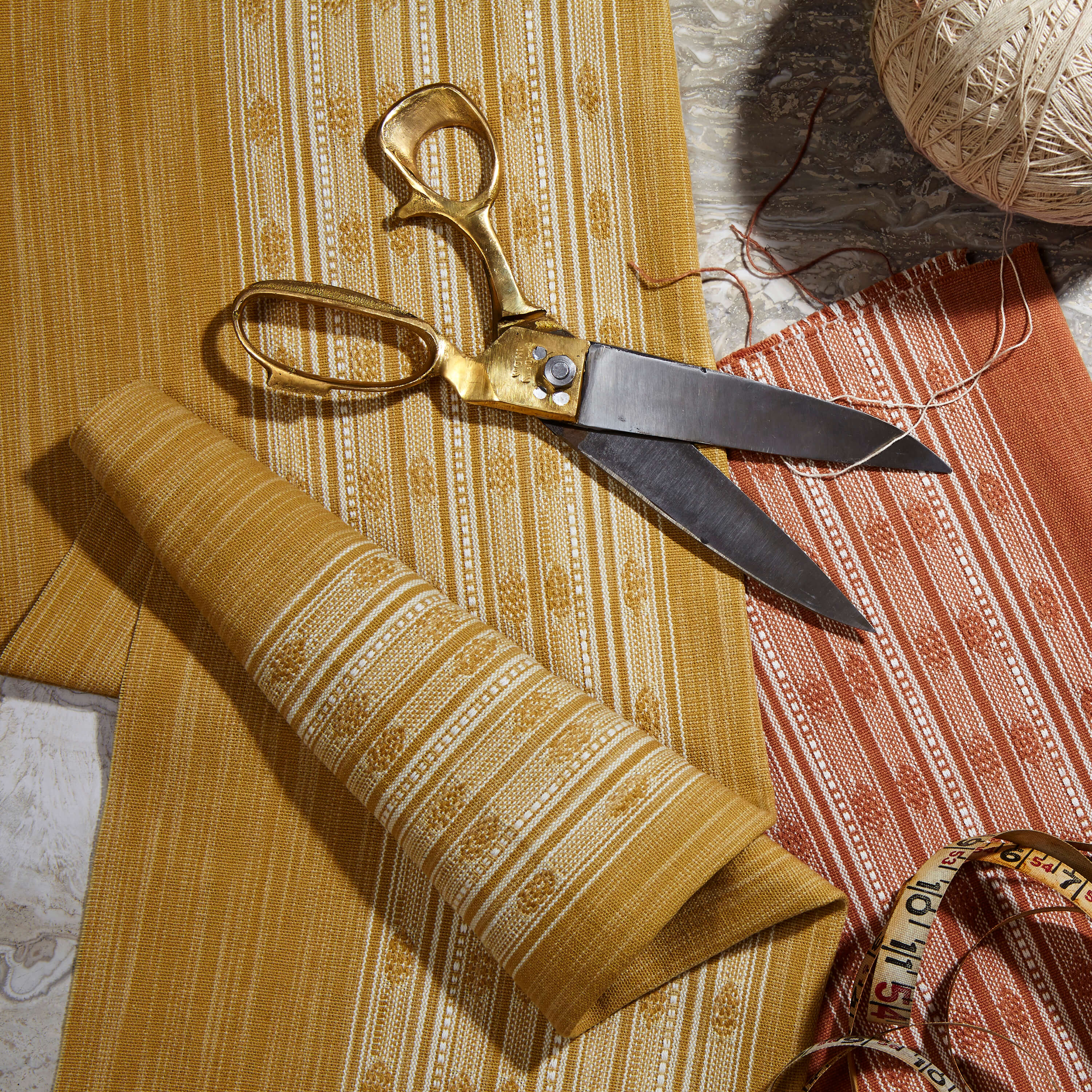 The soft striae of Tapinu have a loose affinity with Sicilian mourning cloths, its colors interlaced with the story of the three fates, known as the Parcae in Roman mythology. Nona spins the thread of life, Decuma measures it, and Morta cuts it. It is the detail that distinguishes one cloth from another. Woven into the fabric is the scent of orange trees, the salt air of the Ioanian coast and the awareness of life’s fleeting beauty.